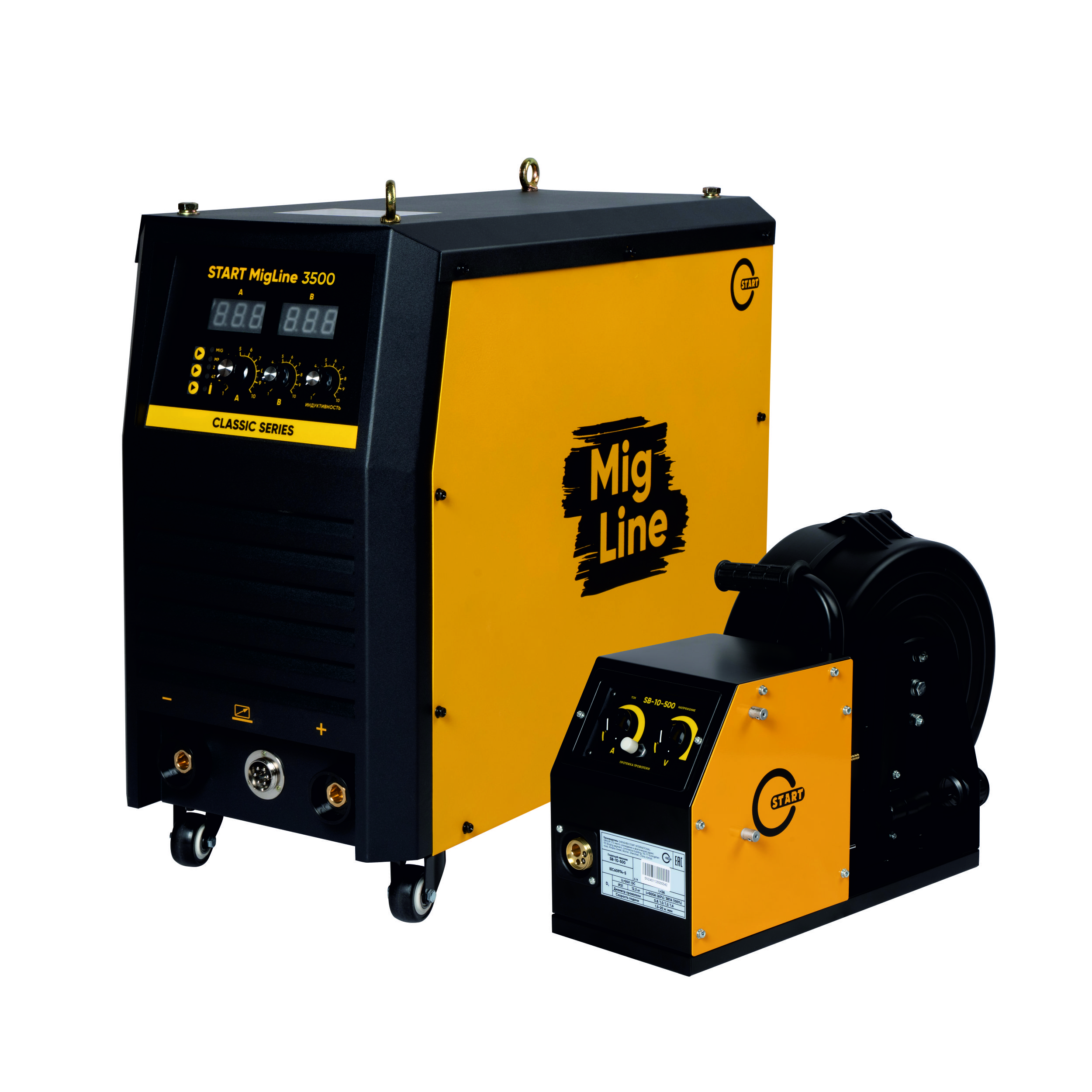 START MIG 3500 - промышленный сварочный полуавтомат инверторного типа, источник с отдельным подающим механизмом. В стандартную комплектацию данного сварочного полуавтомата входит 5 - метровый кабель управления между источником и отдельным подающим механизмом. Полуавтомат предназначен для полуавтоматической сварки в среде защитных газов (MIG/MAG) и полноценной ручной дуговой сварки MMA. Благодаря точной настройке всех параметров, и высокому качеству исполнения - данный аппарат идеален для применения в промышленных условиях.