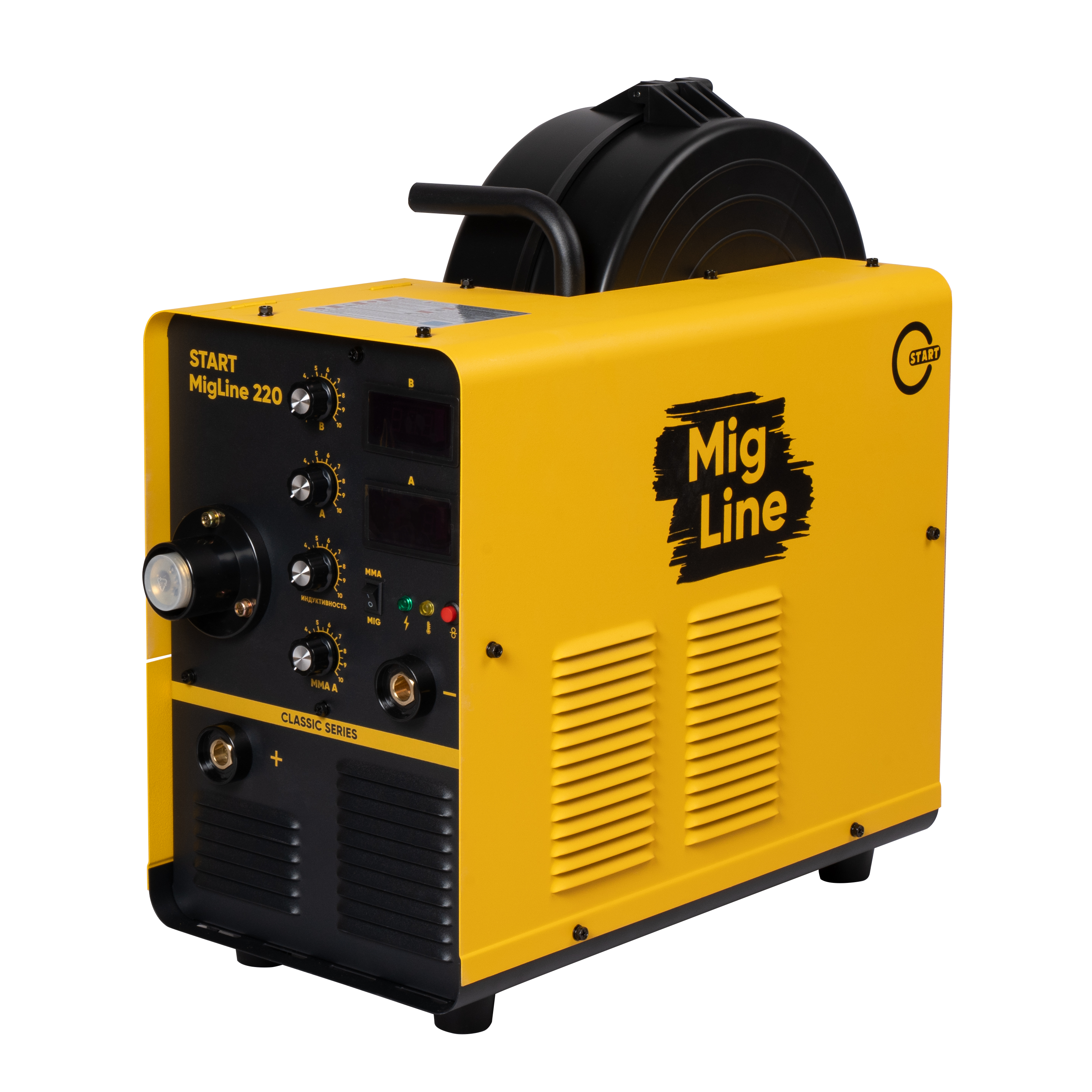 Сварочный полуавтомат инверторного типа START MigLine 220 - легкий и компактный, с выносной катушкой (возможность использования 15 кг катушки) предназначенный для полуавтоматической сварки в среде защитных газов (MIG/MAG) и ручной дуговой сварки MMA. Благодаря точной настройке всех параметров, и высокому качеству исполнения - данный аппарат идеален для применения в автосервисах а так же в небольших производственных условиях.