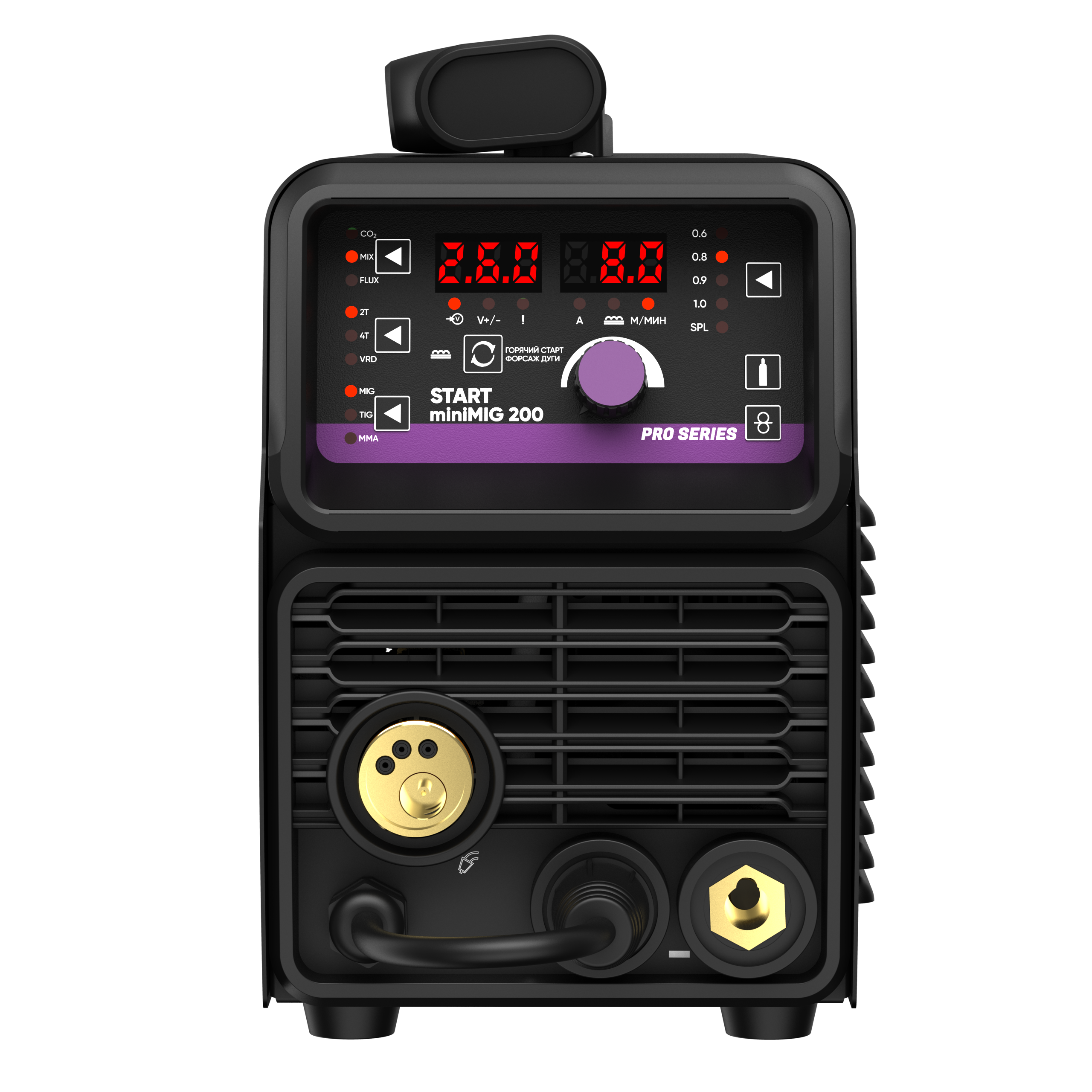 Теперь полуавтомат имеет полностью синергетическое управление, для настройки всех параметров используется всего 1 регулятор. Аппарат сам подберет необходимые значения для идеального шва.