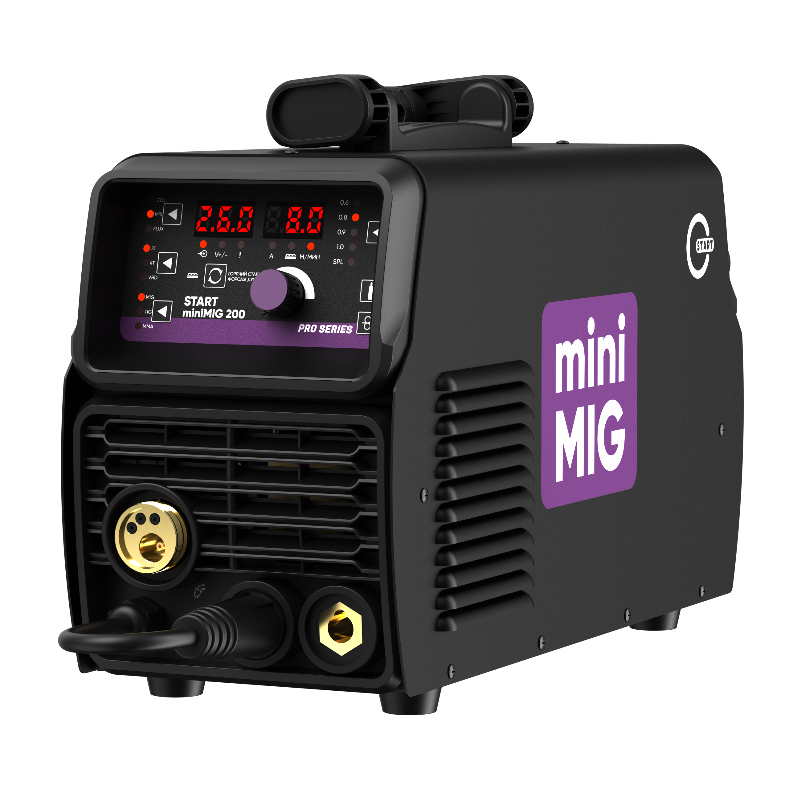 Инверторный полуавтомат START miniMIG 200 – это новый уменьшенный корпус, новые характеристики сварочной дуги и более легкое управление. Модель предназначена для полуавтоматической сварки в среде защитного газа MIG-MAG, для ручной дуговой сварки штучными электродами MMA.