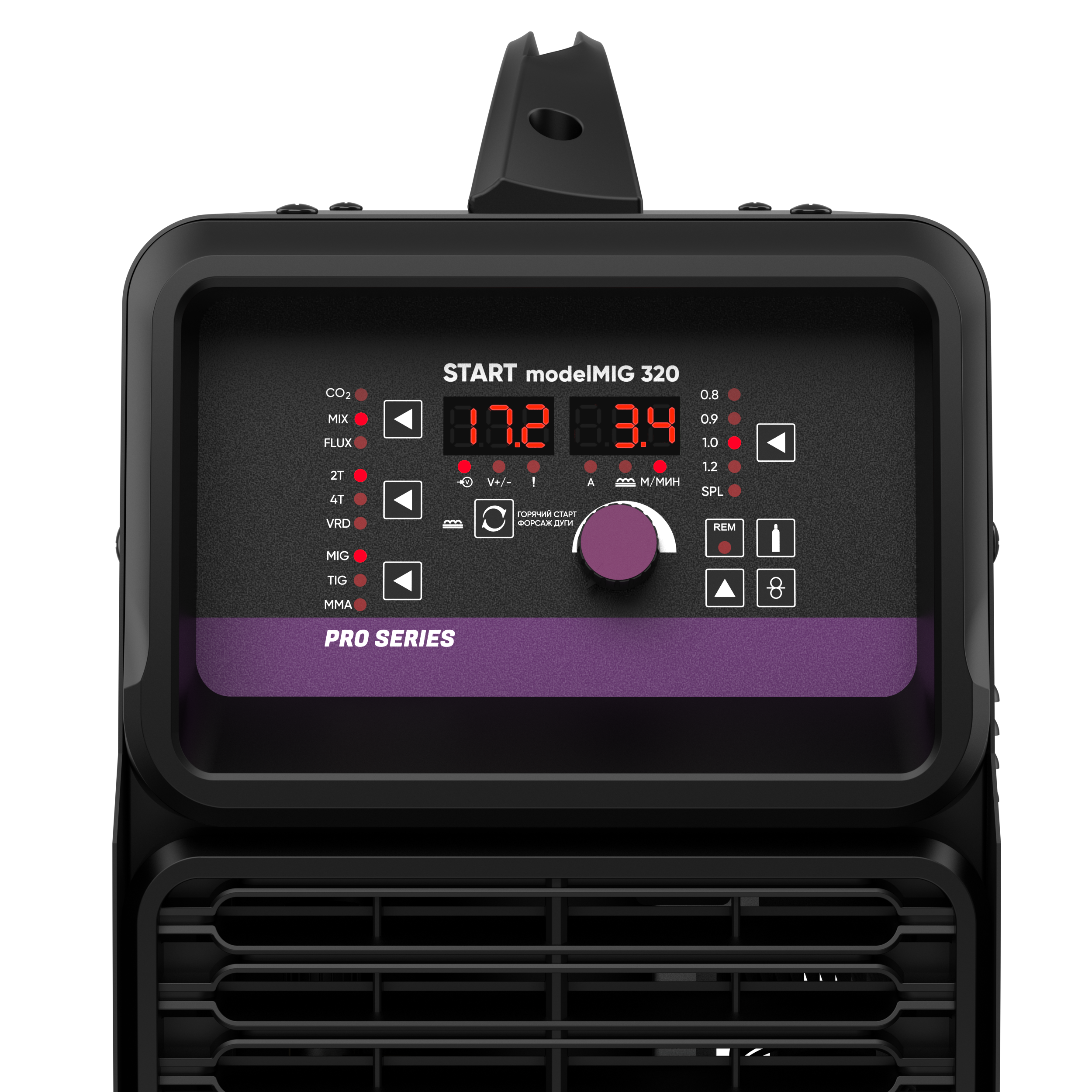 Обновленный инверторный полуавтомат START 320 modelMIG – модель предназначена для полуавтоматической сварки в среде защитного газа MIG-MAG, для ручной дуговой сварки штучными электродами MMA. Теперь полуавтомат имеет полностью синергетическое управление, для настройки всех параметров используется всего 1 регулятор. Аппарат сам подберет необходимые значения для идеального шва.
